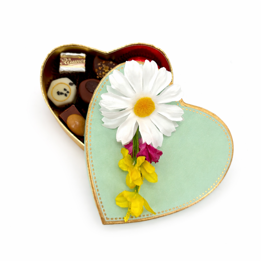 Exklusive Herzbonboniere gefüllt mit edler Zauner-Confiserie.