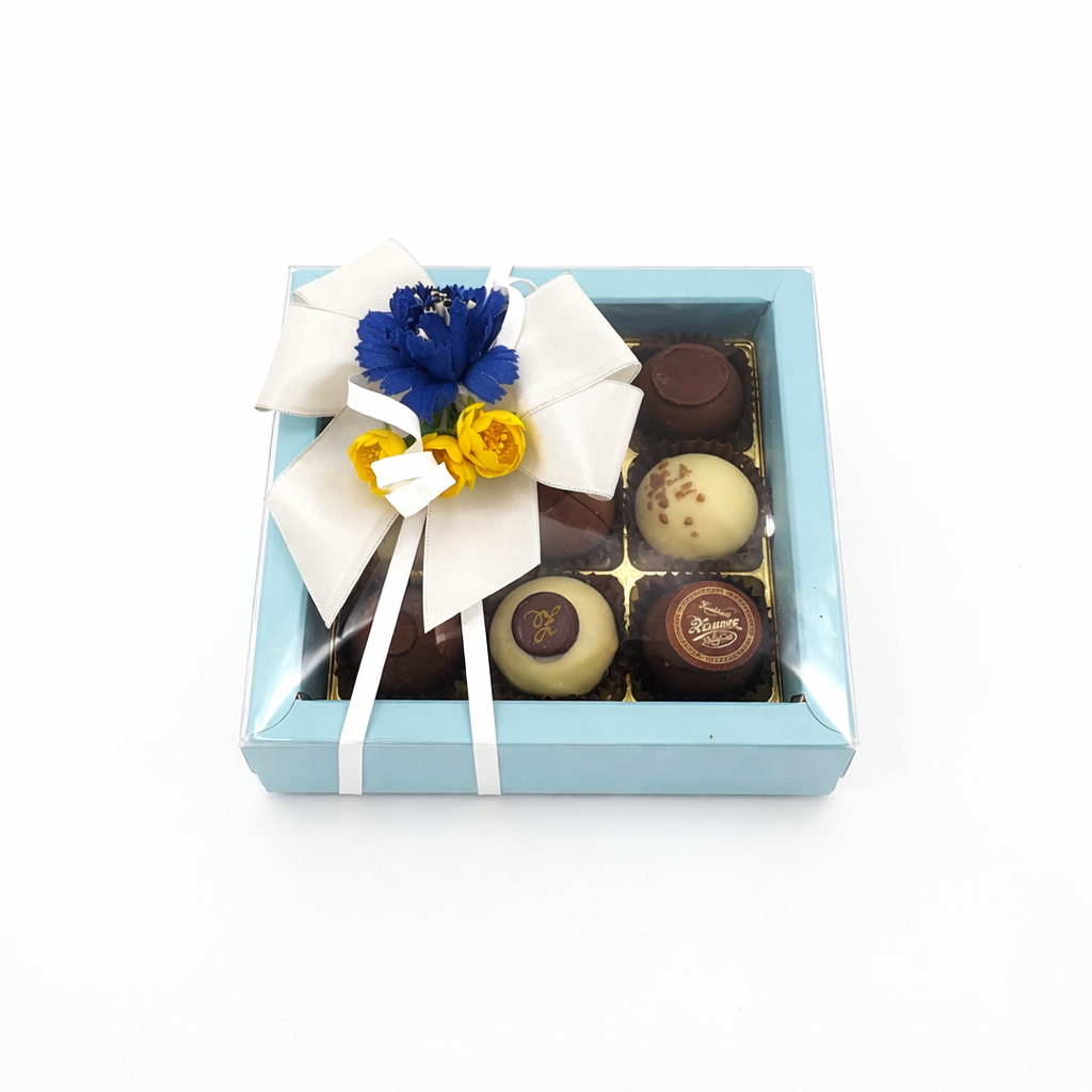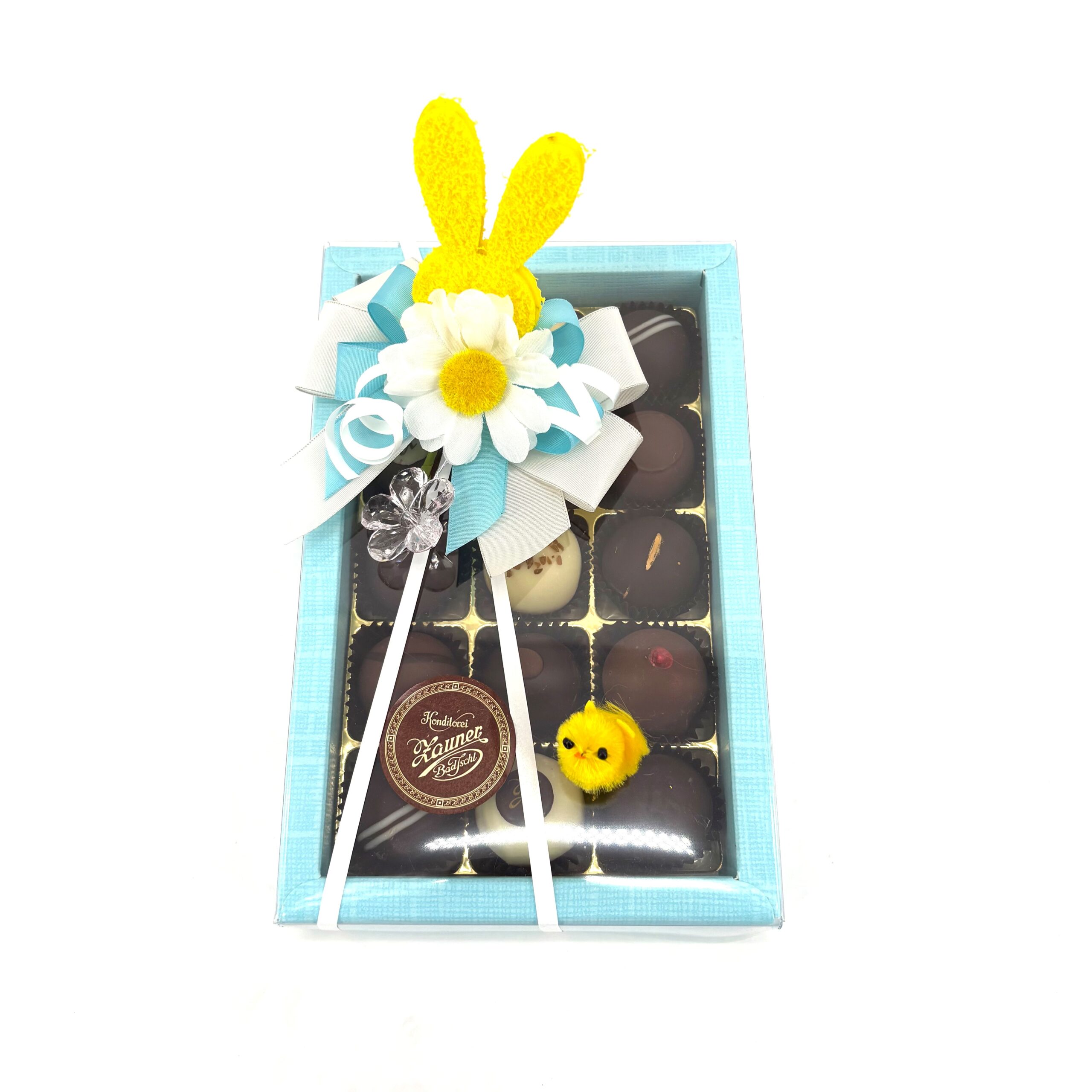 Hausgemachte Trüffelkugeln mit verschiedenen Füllungen im Oster-Design