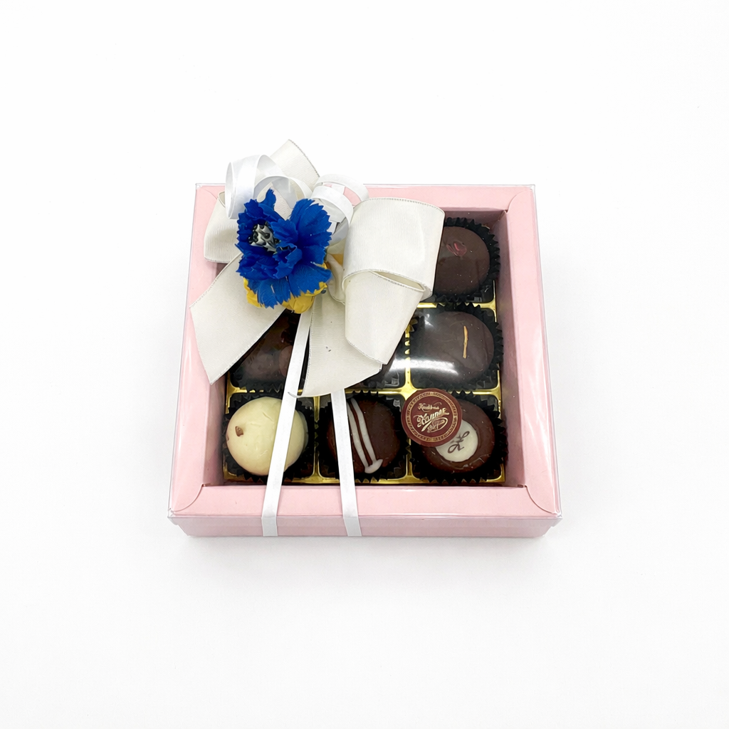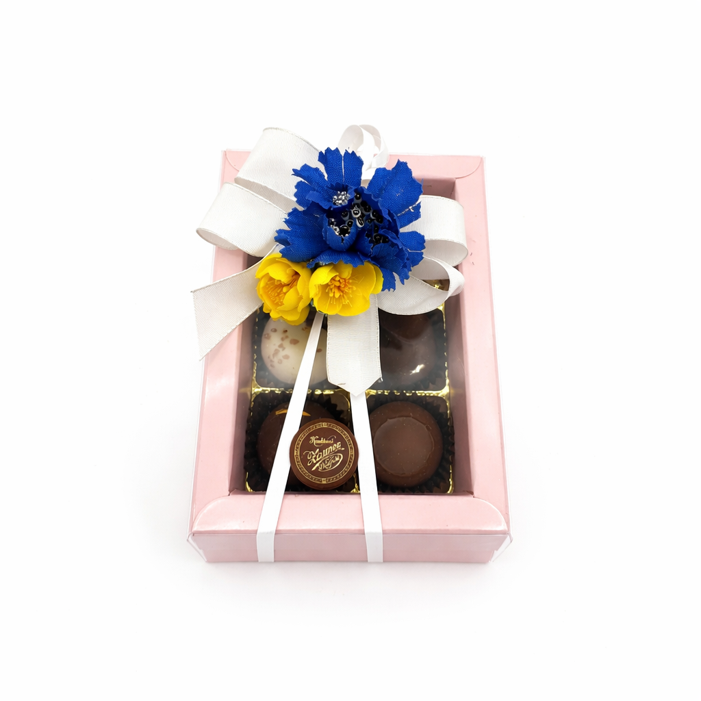 Jede Klarsichtpackung ist mit hochwertigem Blumen- und Maschendekor gebunden.
